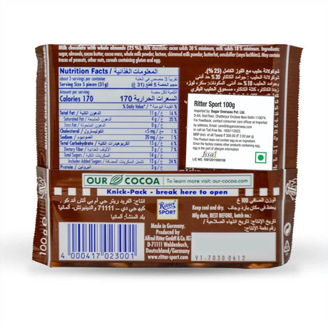 17.74 SR شامل الضريبةسعر الوحدة0.00 SRغير متوفرهشوكولاتة ريتر بحبات اللوز الكاملة - 8 × 11 × 100 جرام
