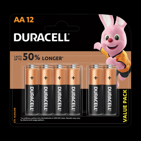 65.75 SR Vat IncludedUnit price0.00 SR /UnavailableDuracell AA Alkaline Batteries, 15 Volt, 12 Count - Black