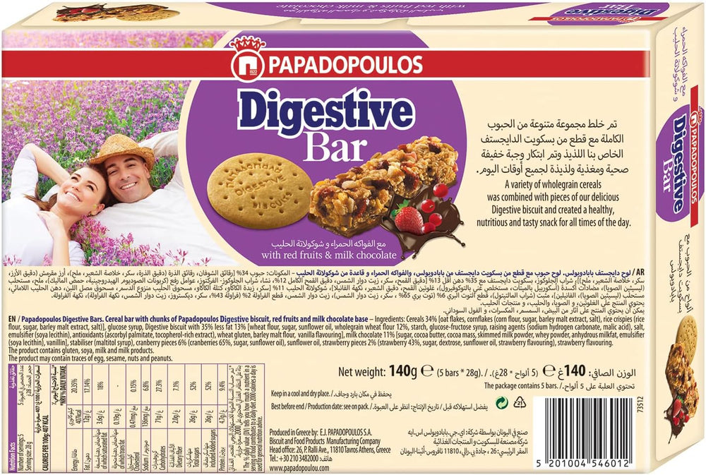 Papadopoulos Digestive Bar with Fruits and Chocolate, 140g - Multicolour is backordered and will ship as soon as it is back in stock.