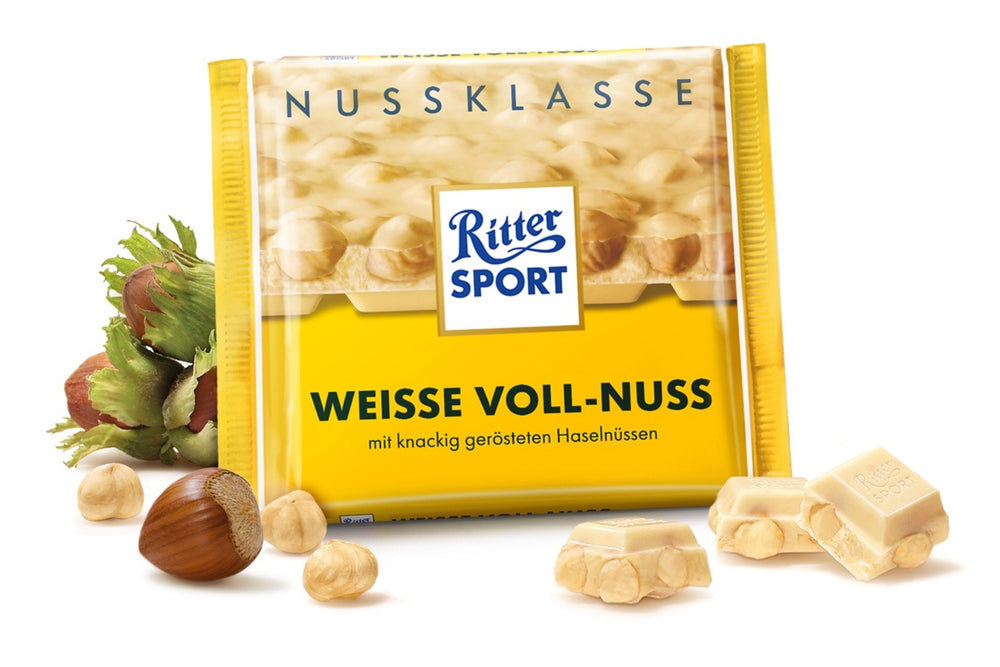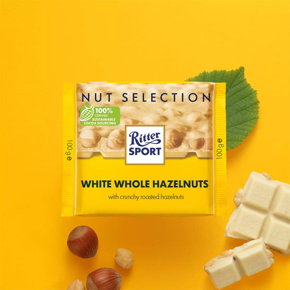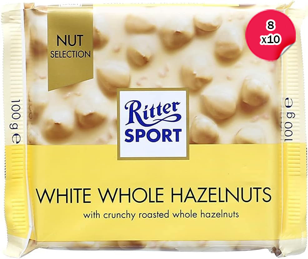 Ritter White Chocolate with Whole Hazelnuts - 8 x 10 x 100g