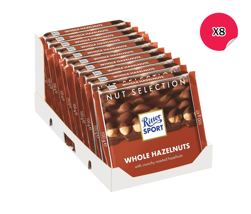 Ritter Chocolate with Whole Hazelnuts - 8 x 10 x 100g