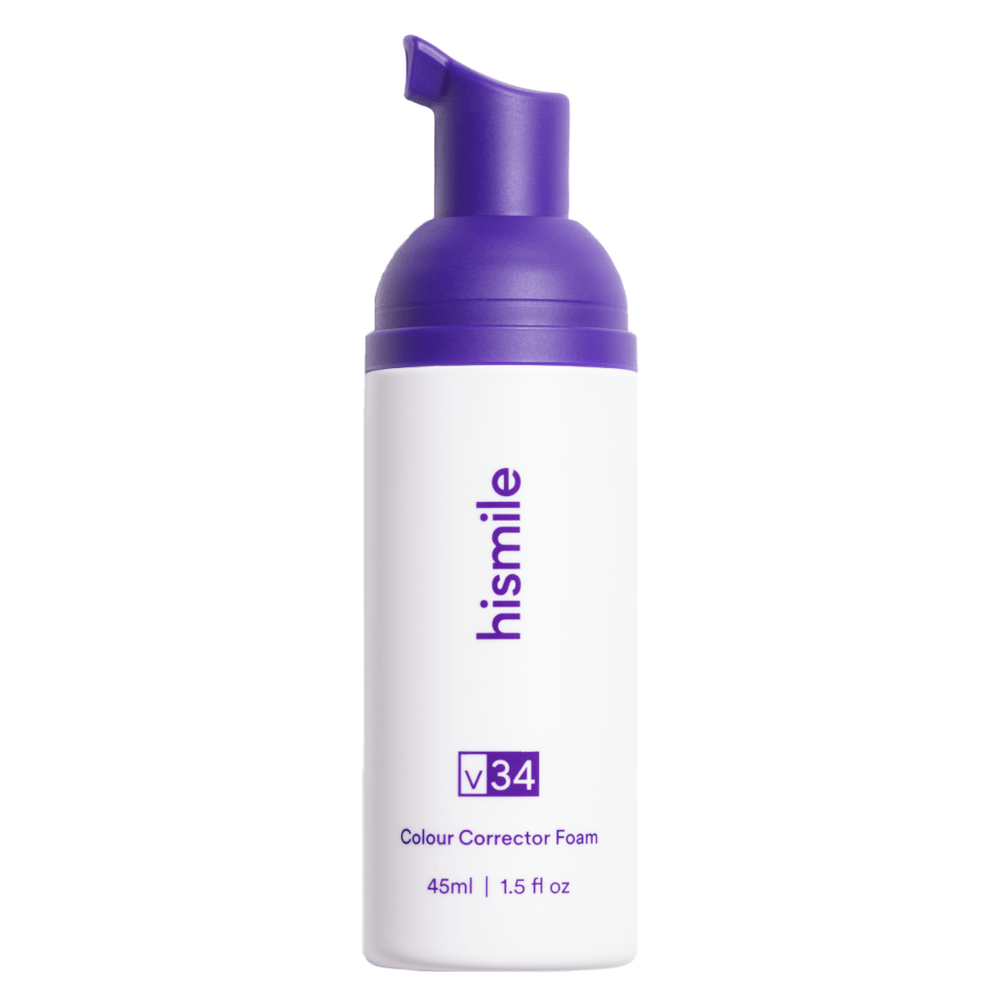 Hismile V34 Colour Corrector Foam - 45 ml is designed to help neutralize yellow tones and enhance the visual brightness of teeth. Using colour-correcting technology, it supports a whiter-looking smile as part of a daily oral care routine.
