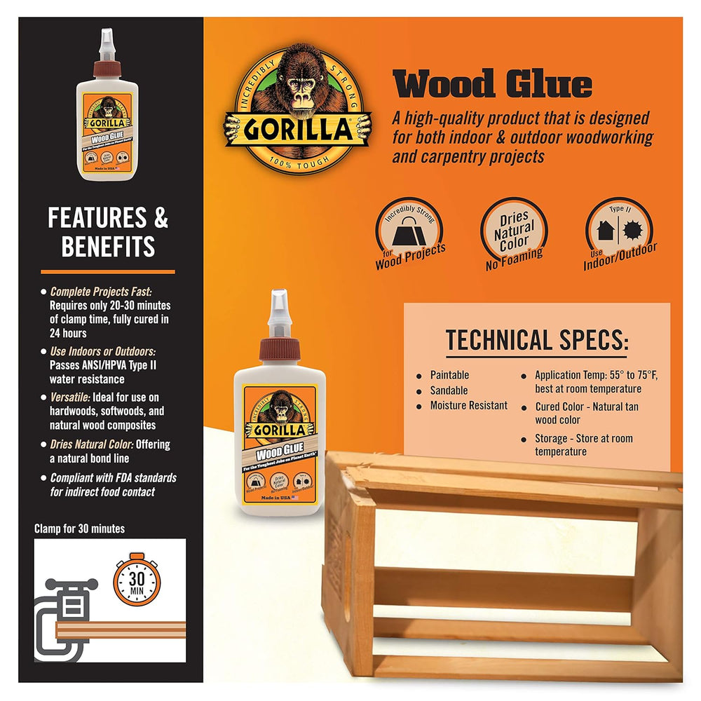 غراء جوريلا لاصق للاخشاب فائق القوة، 4 جم