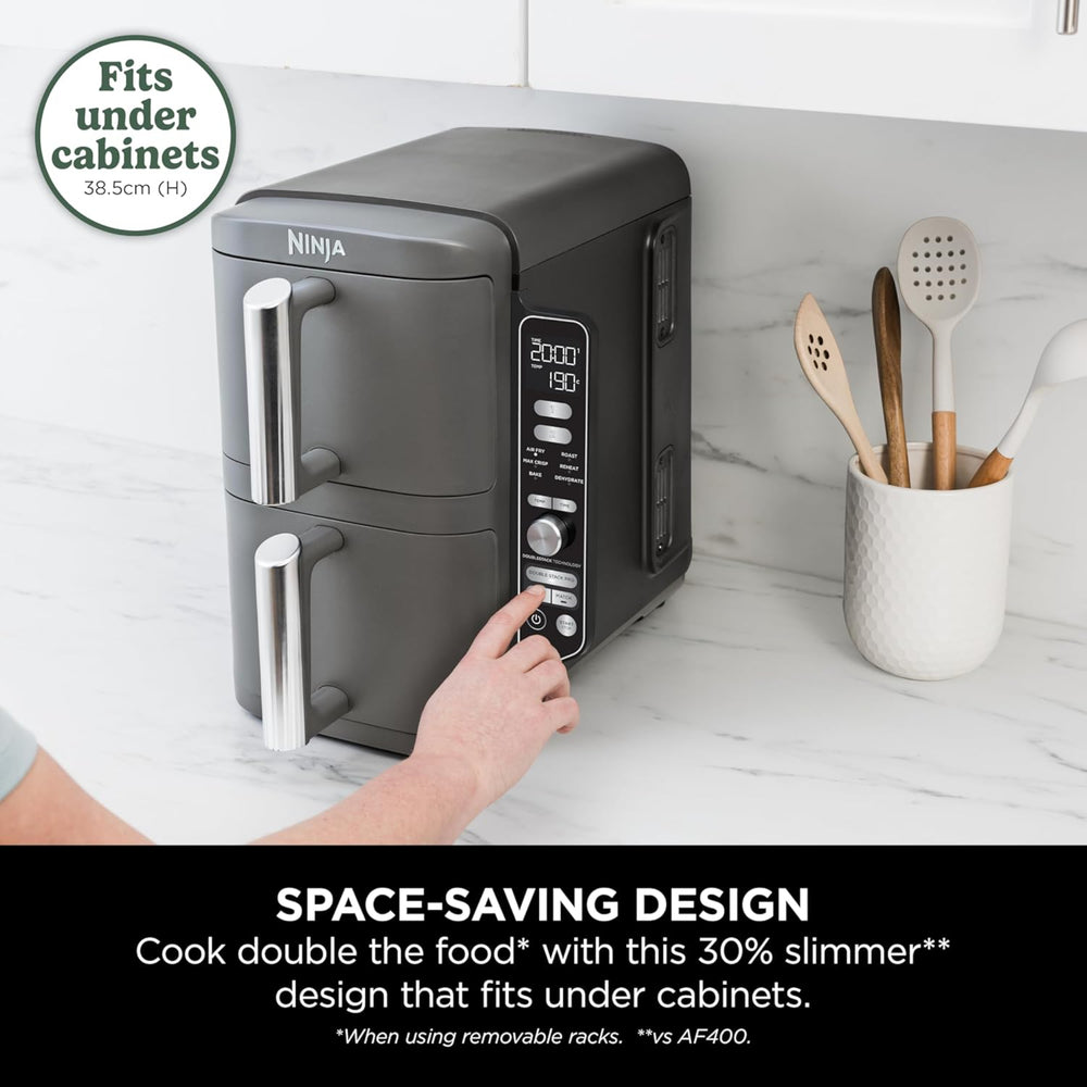 قلاية هوائية نينجا مزدوجة الأدراج، 9.5 لتر - أسود