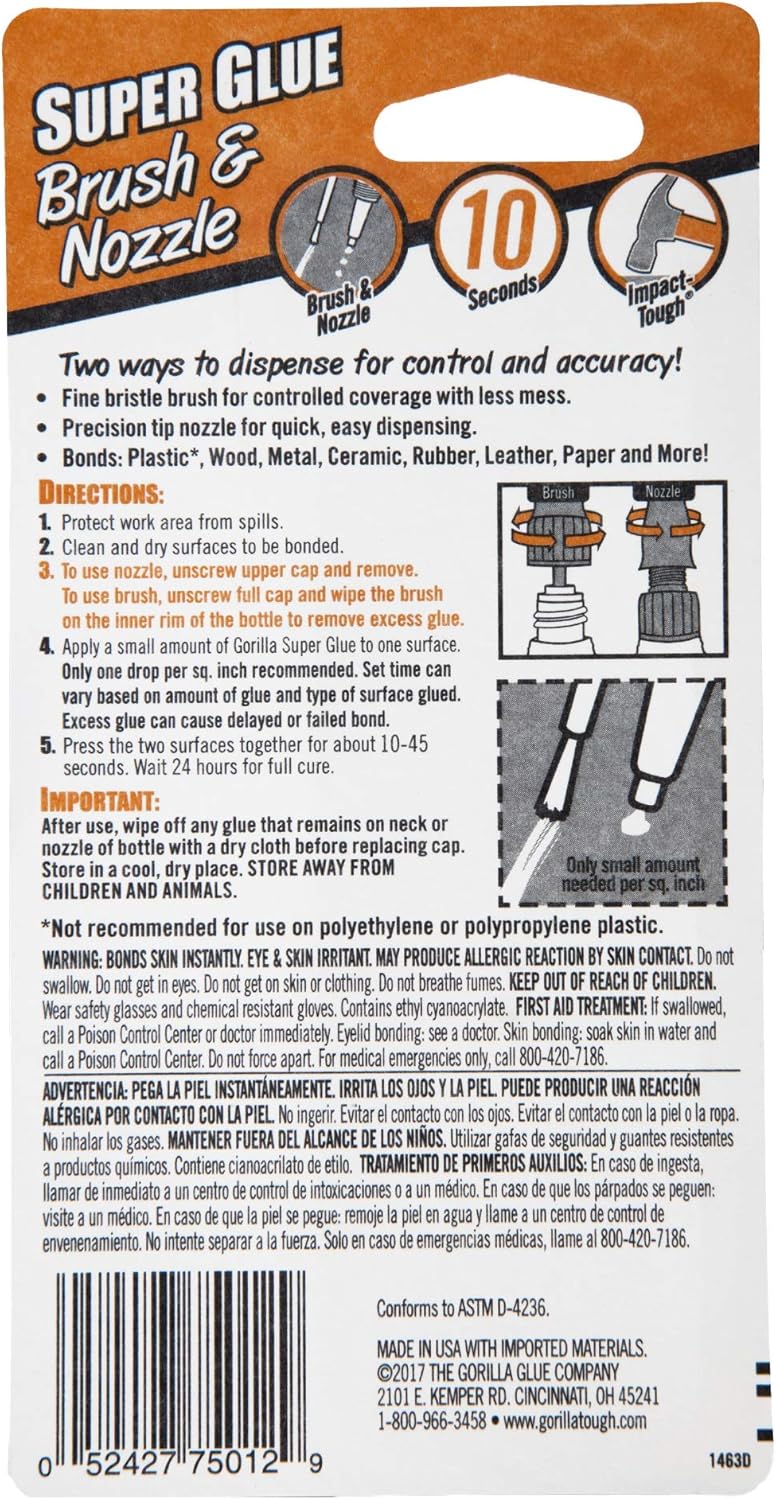 لاصق جوريلا غراء فائق مع فرشاة وفوهة توزيع، 0.35 أونصة